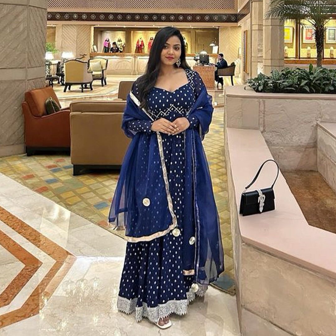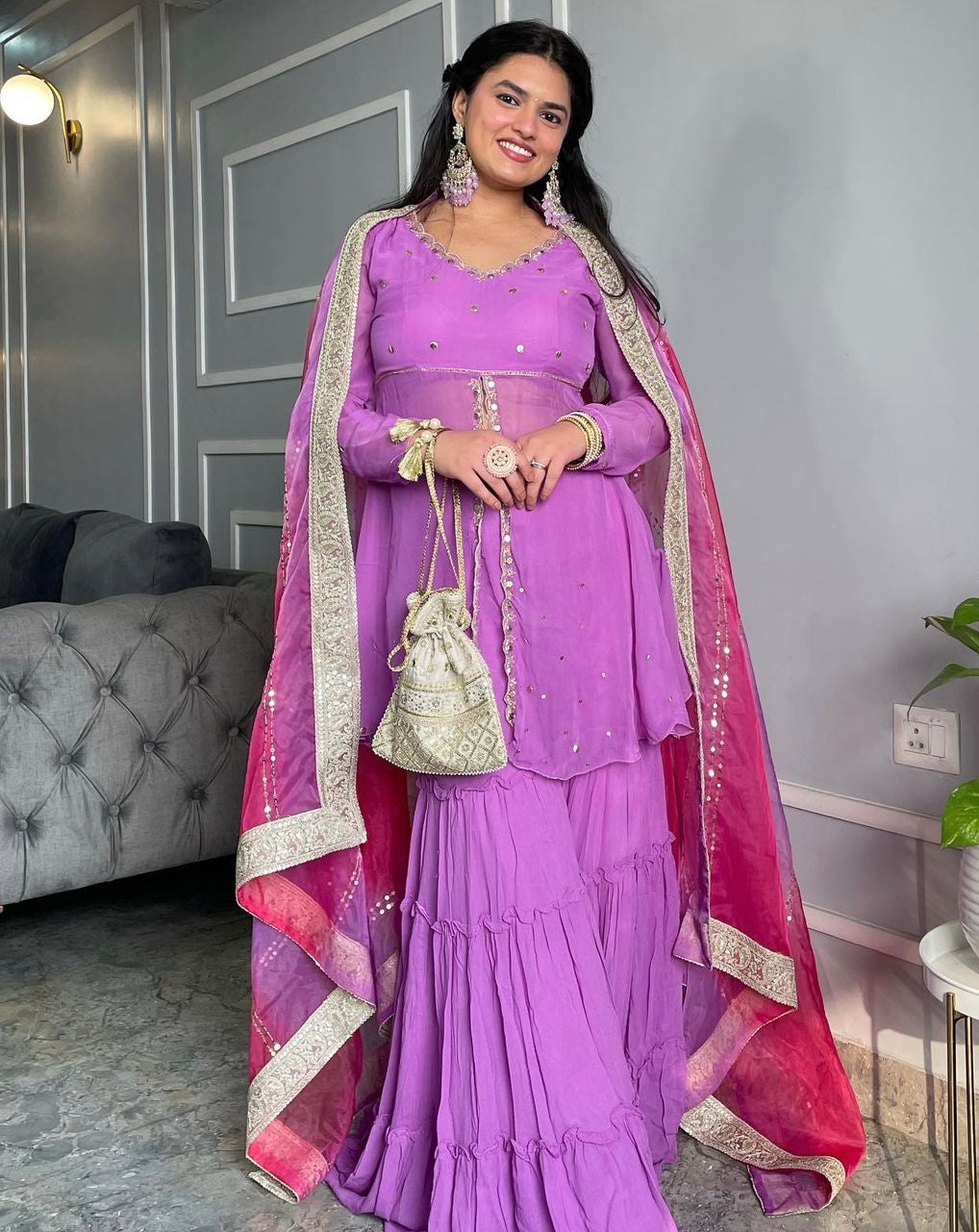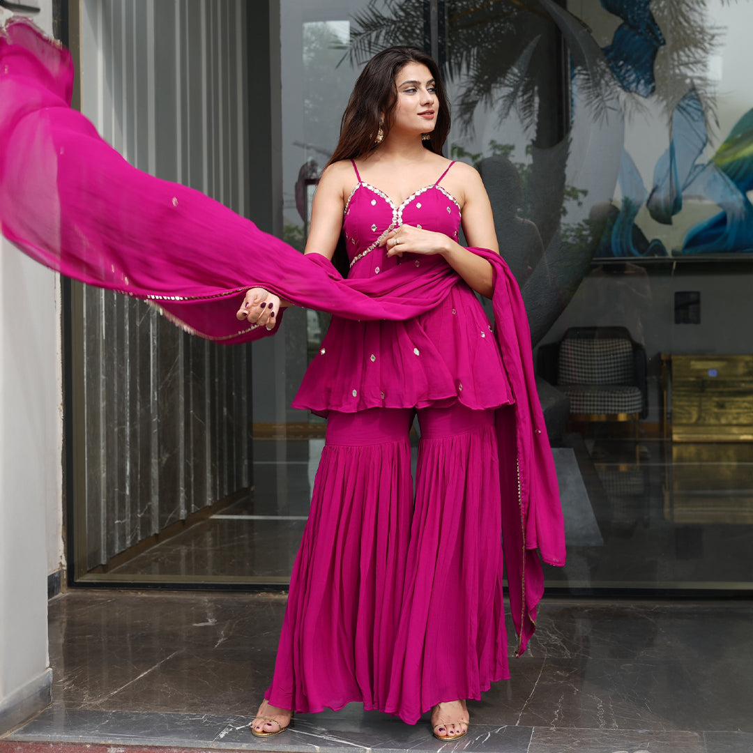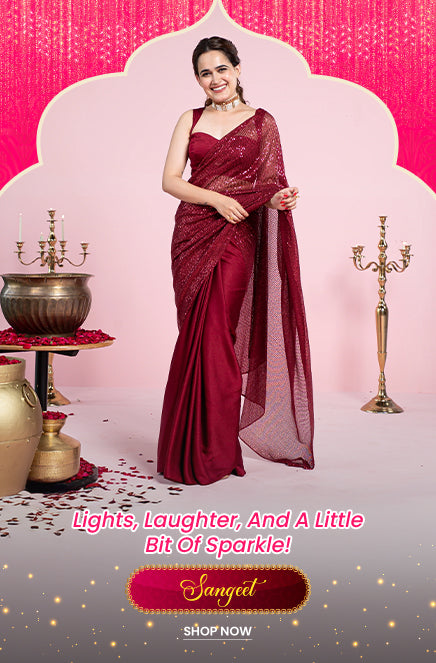 Every embroidery and handwork is an amalgamation of different layers of intricate patterns and hues. Choose from the largest selection of Cut Dana embellished Sharara sets for women to Zari embroidered designer suits and Sequin embellished Sarees to threadwork adorned traditional wear Dresses. Indulge in the flair of prints, patterns, and embroideries with every outfit and embrace the magnetic charm of timeless styles.