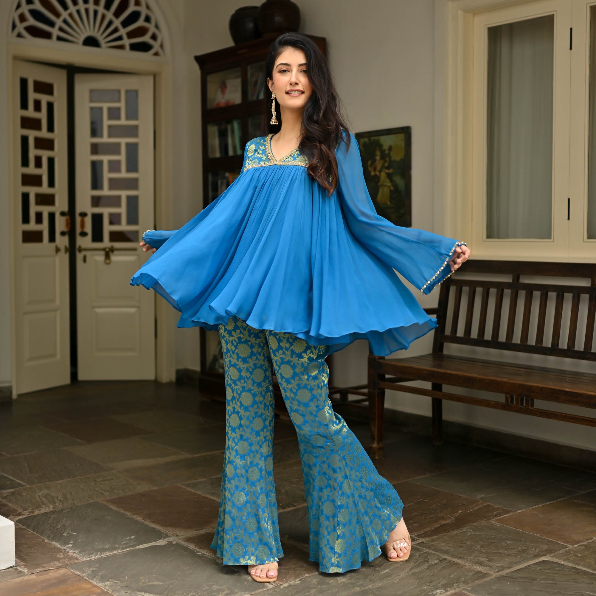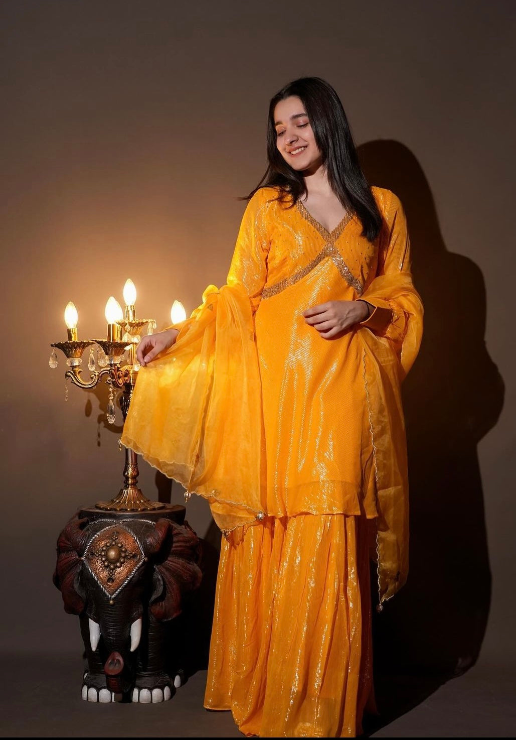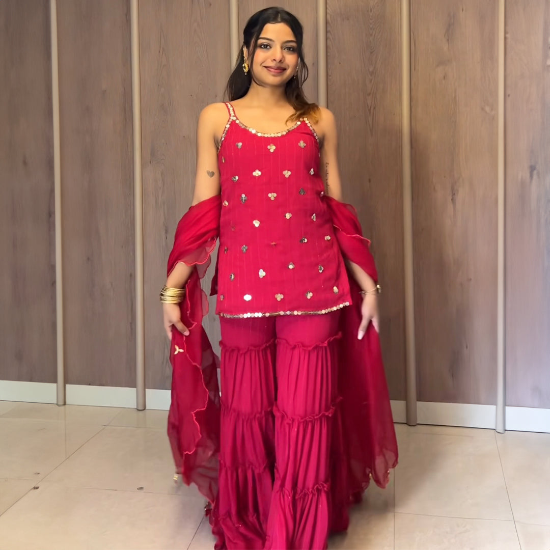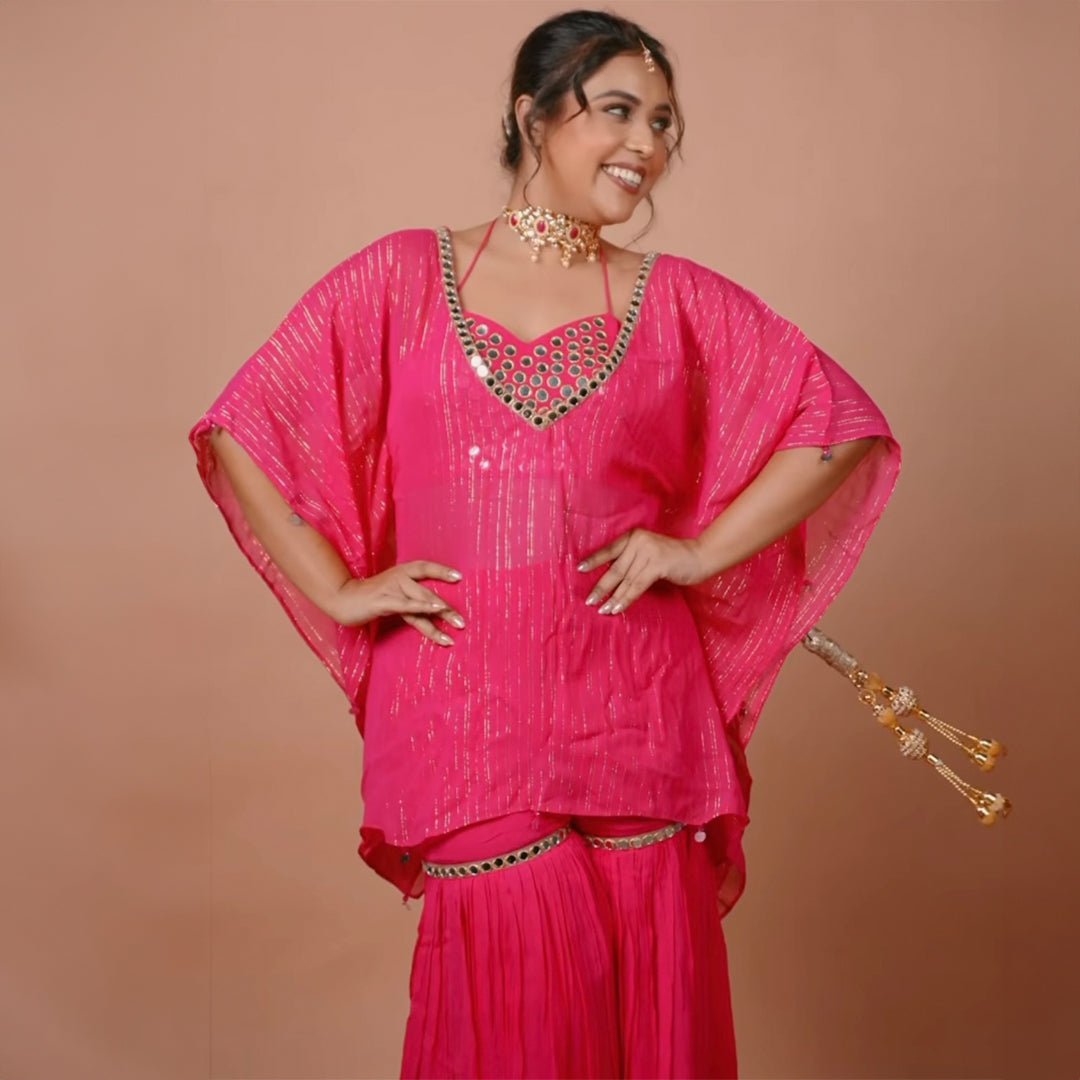 Every embroidery and handwork is an amalgamation of different layers of intricate patterns and hues. Choose from the largest selection of Cut Dana embellished Sharara sets for women to Zari embroidered designer suits and Sequin embellished Sarees to threadwork adorned traditional wear Dresses. Indulge in the flair of prints, patterns, and embroideries with every outfit and embrace the magnetic charm of timeless styles.