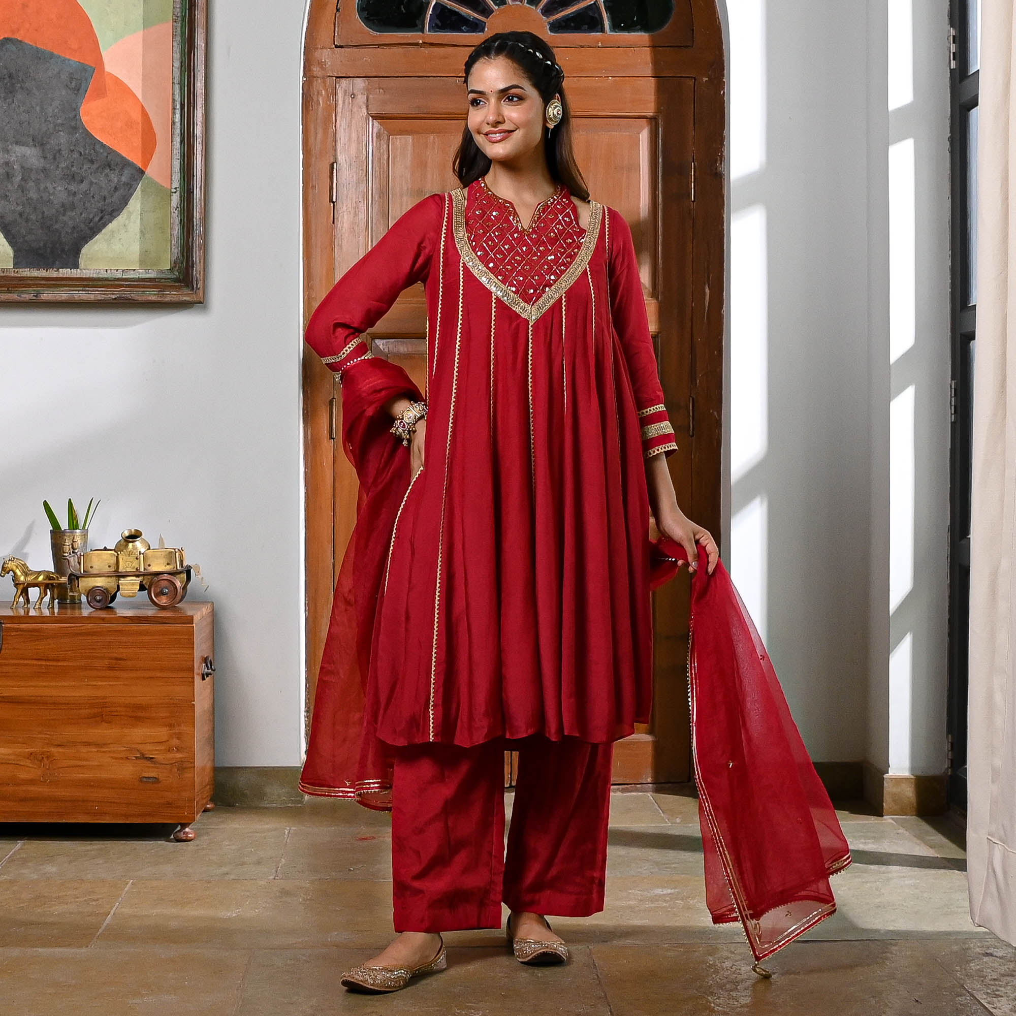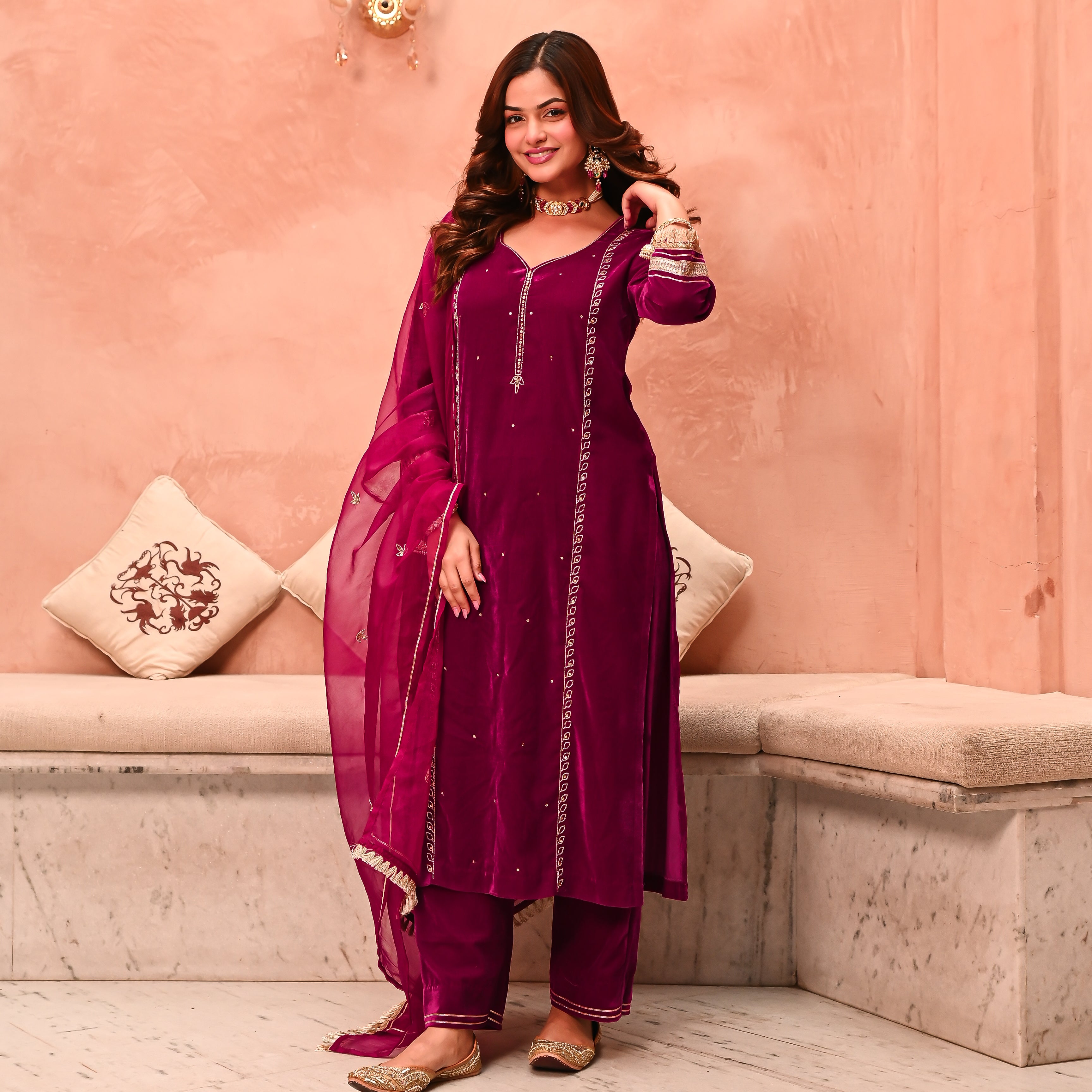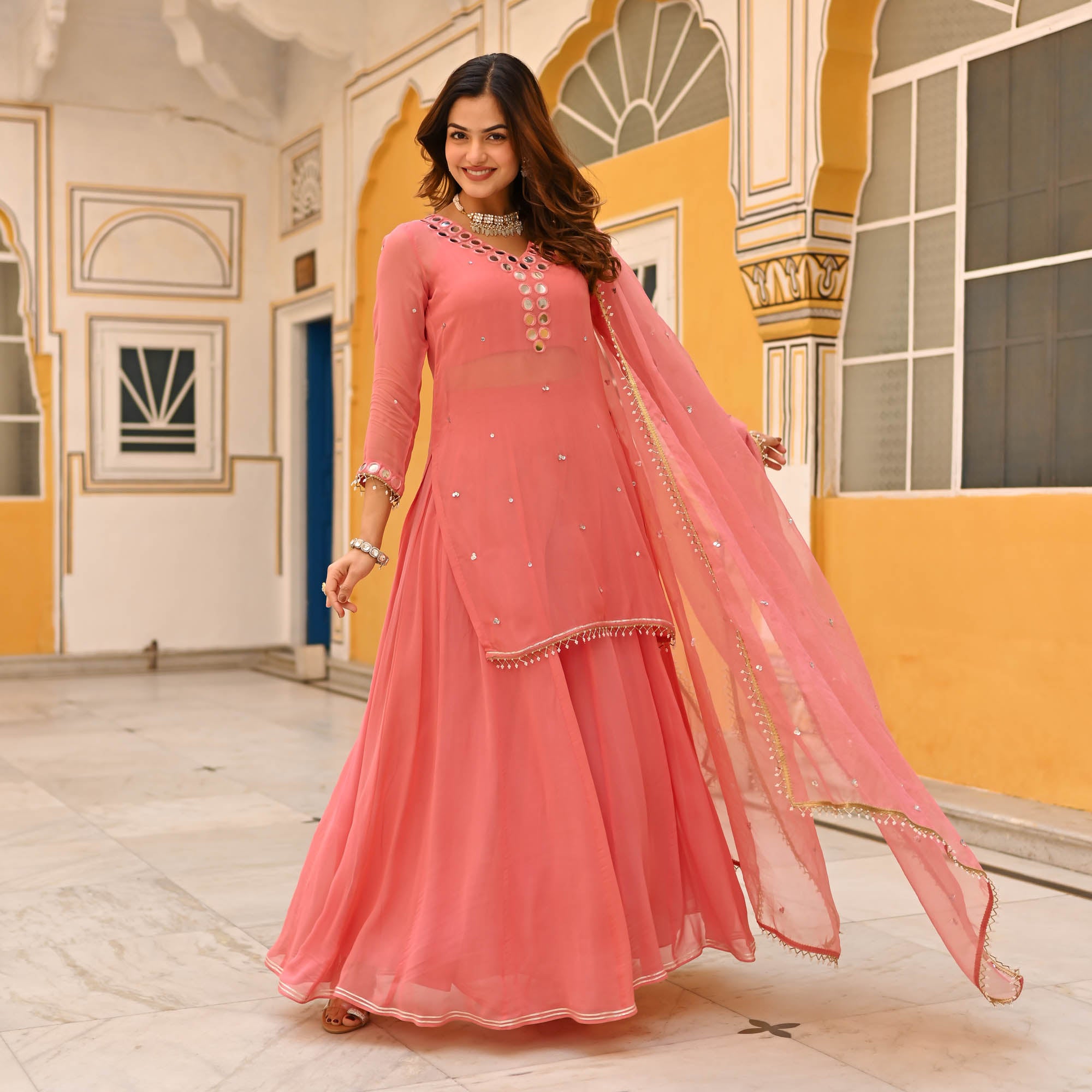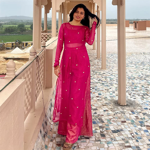 Redefine elegance with a curated selection of Indian outfits that transcend boundaries. From intricately embroidered chikankari lehenga to ready-to-wear saree and velvet Anarkali salwar kameez to chic Co-ord sets for women. Embrace the cultural tapestry of India with our gorgeous ensembles. The immaculate blend of traditional and trendy is reflected in each outfit, crafted from the most luxurious fabrics like silk, velvet, georgette, cotton, mulmul, and more.
