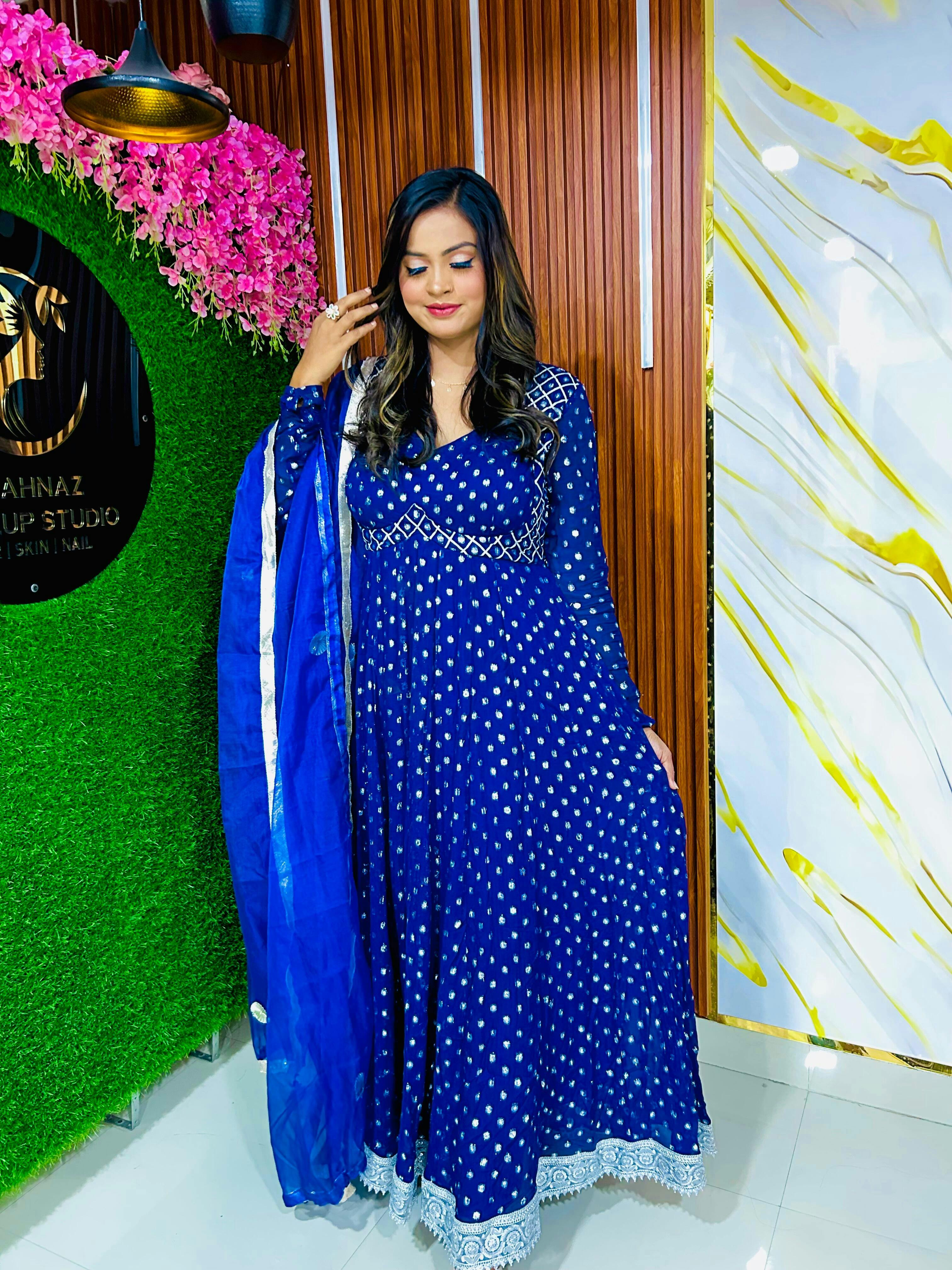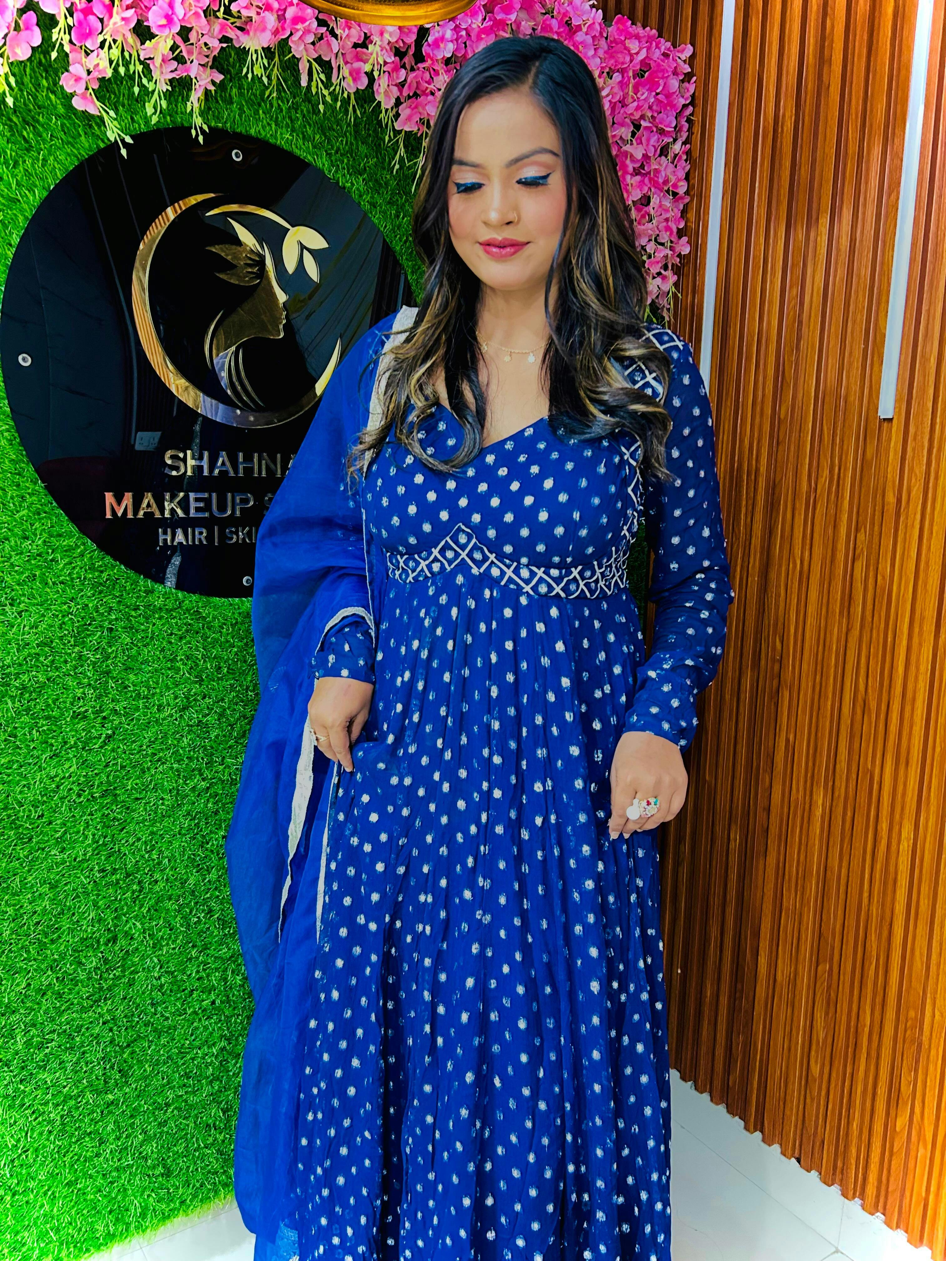 This beautiful Rumi Anarkali Set is crafted from high-quality jacquard fabric for a luxurious look and feel. The full-length anarkali and the full-sleeved kurta are detailed with intricate gotta handwork for an elegant, timeless design. Perfect for any special occasion.